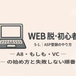 WEB 脱・初心者⑤ 5-1|ASP登録のやり方(初心者向け)A8・もしも・VCの始め方と失敗しない順番